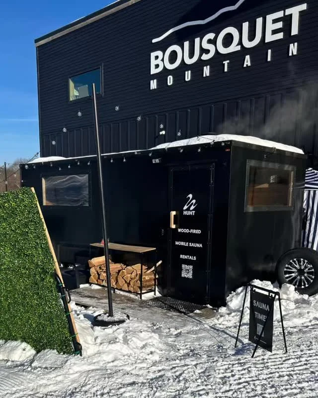 Experience HUHT’s wood-fired sauna and cold plunge oasis at Bousquet Mountain all winter long. Whether you’re warming up between ski runs, unwinding après-ski, or visiting just for the sauna, this is the region’s most restorative contrast-therapy experience—complete with mountain views, expansive windows, and essential oil–infused steam.